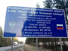 - Внимание: с 1 января на автодорогах А-107 «ММК» и А-108 «МБК» введен единый километраж - ФКУ Центравтомагистраль. www.centrdor.ru. Дата обращения: 20 июня 2020.
