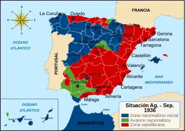 В августе и сентябре 1936 года испанские националисты одержали ряд важных побед над республиканскими войсками — в результате битвы при Бадахосе 14 августа 1936 года республиканцы оказались отрезаны от Португалии, а 14 сентября 1936 года испанскими националистами была перекрыта граница между Страной Басков и Францией. Успехи испанских националистов по времени совпали с изменением политики Советского Союза, который начал занимать более активную позицию по поддержке республиканцев. Для этого Советский Союз установил дипломатические отношения с Республикой Испания, а первым послом в Испании 21 августа 1936 года был назначен Марсель Розенберг (бывший представитель Советского Союза в Лиге Наций).
