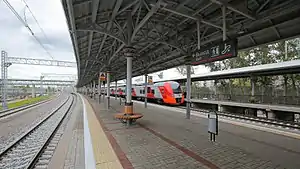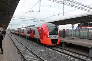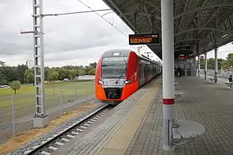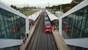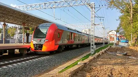 ![]() Электропоезд ЭС2Г-050 «Ласточка» на подъезде к платформе «Шелепиха» | |