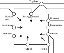 Подобная «кольцевая» схема электроснабжения для крупнейших городов является наиболее надежной. При создании кольца в него входили ПС «Чагино», «Очаково», «Бескудниково», «Ногинск» и «Пахра»[1].