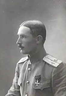 Временно командовал 2-м и 3-м эскадронами полка. Произведен в штабс-ротмистры 15 апреля 1916 года «за выслугу лет», в ротмистры — 1 июля 1917 года на основании Георгиевского статута[4].