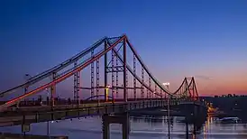 - Рыбальский вантовый мост — мост через гавань Днепра на Рыбальский остров, сооружен в 1963 году, в 1997 году по мосту было закрыто автомобильное движение, в 2009 году прекращено пешеходное движение и начат демонтаж моста. 50°28′24″ с. ш. 30°31′24″ в. д.