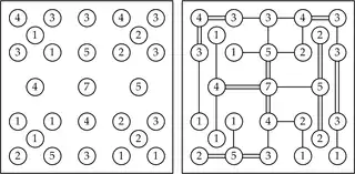 Изначально на рисунке указано число в каждом кружке, изображающих острова. Нужно соединить острова мостами в виде прямых линий по следующим правилам[1]: