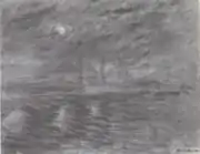 | Мост Ватерлоо, эффект солнца в дыму, фр. Waterloo Bridge, effet de soleil avec fumées. 65 × 100 см. Слева внизу подпись и дата: Claude Monet 1903. Балтиморский художественный музей, Мэриленд, США. Инв. № 1976.38[19]. | В октябре 1905 года выкуплена у Моне Полем Дюран-Рюэлем. В 1911 году продана Артуру Б. Эммонсу из Ньюпорта, США. 14—15 января 1920 года выставлена на распродажу собрания Эммонса в отеле «Плаза», Нью-Йорк. Около 1923 года в собрании Хелен и Абрама Эйзенбергов в Балтиморе, в 1967 году передана на хранение в Балтиморский художественный музей и в 1976 году по завещанию перешла в собственность музея[20]. |