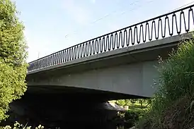 Мост однопролётный железобетонный, по статической системе — трёхшарнирная рама. Ригель рамы выполнен из сборных железобетонных преднапряжённых элементов заводского изготовления, омоноличенных с «ногами» рамы. По верху балки объединены железобетонной плитой проезжей части, включённой в работу главных балок. «Ноги» рамы выполнены из монолитного железобетона. Устои массивные, из монолитного железобетона, на свайном основании. К устоям примыкают низкие подпорные стенки. Общая длина моста составляет 38,3 м, ширина — 31,67 м[2].