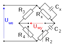 Неизвестные параметры исследуемого конденсатора можно при этом получить из решения системы уравнений при известных — частоты, при которой мост сбалансирован, и величин :