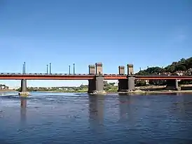24 июня 1941 года после нападения Германии на СССР мост был взорван отступавшими частями Красной Армии. В течение 9 месяцев мост был восстановлен немецкими военными[3]. В августе 1944 года он был взорван отступавшими немецкими войсками[15]. После войны был построен временный деревянный мост, который был снесен в 1946 году во время половодья. В 1946—1948 годах по проекту ленинградского института «Проектстальконструкция» советскими военными и немецкими военнопленными на старых опорах был построен новый металлический балочный мост с центральным разводным пролётом[16]. Архитектурное оформление разработал архитектор Л. Казаринский[1]. На мосту было установлено чугунное перильное ограждение художественного литья с использованием советской символики – звезды и цветочные мотивы. На пилонах были помещены барельефы с изображением герба Литовской ССР.