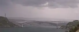 Мост железобетонный рамно-консольный. Общая длина – 538 м. Имеет три пролета. Схема моста: 120+298+120 м. Мост расположен на горизонтальной кривой радиусом 3250 м . Подмостовой габарит составляет 180 х 45 м. По своей конструкции мост схож с мостом Рафтсундет Постоянные опоры состоят из двух монолитных стоек. Толщина стоек постоянная, в то время как ширина изменяется в зависимости от высоты. Внутри опоры полые. Балка пролетного строения - коробчатая постоянной ширины с изменяющейся высотой. Ширина балки - 7 м, высота балки над промежуточными опорами составляет 14.5 метров, в середине пролетов – 3.5 м. Материал центральной части главного пролета моста - легкий бетон марки LC60, в то время как другие части конструкции сооружены с использованием бетона марки C65. Ширина проезжей части - 7,5 м, а общая ширина моста составляет 10.3m, в том числе тротуар шириной 2м.