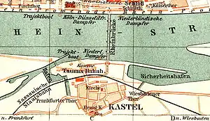 Рейнский мост (нем. Die Rheinbrücke) был построен в 1882—1885 годах по проекту архитекторов Фридриха фон Тирша и Бернхарда Бильфингера. Затраты на строительство составили 3,6 миллионов золотых марок. Торжественное открытие моста состоялось 30 мая 1885 года.