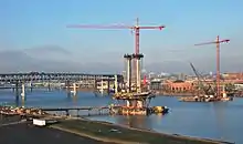 В 2008 году проект получил необходимое одобрение городских Советов Портленда и Милуоки и Регионального правительственного агентства штата Орегон.[3][12] TriMet одобрила контракт стоимостью 127 миллионов долларов на строительство моста в декабре 2010 года.[13]