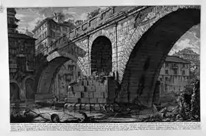 По мнению специалистов оригинальная архитектура Камероновой галереи в Екатерининском парке Царского Села постройки архитектора Чарлза Камерона, в частности, высокий подиум и пандус, навеяны офортом Пиранези «Вид на мост Фабрицио в Риме» (1756)[5].
