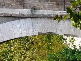 С двух сторон имеются латинские надписи, свидетельствующие о строителе моста: L . FABRICIVS . C . F . CVR . VIAR | FACIVNDVM . COERAVIT | IDEMQVE | PROBAVIT («Луций Фабрициус, сын Гая, начальник дорог, позаботился о строительстве и также одобрил его строительство»). Надпись повторяется четыре раза: с двух сторон на каждой арке. Более поздняя надпись под разгрузочной аркой мелкими буквами свидетельствует о том, что мост был восстановлен при папе Иннокентии XI, вероятно, в 1679 году.