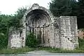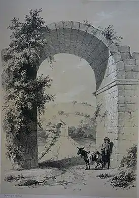 У западного входа стояла триумфальная арка, а с восточной стороны имеются остатки апсиды, функция которой неясна, но, возможно, она служила религиозной святыней[4]. Купол апсиды расположен с восточной стороны, её высота составляет 11 м, а ширина — 9 м[11]. Остатки арки, ныне утраченной, запечатлены на эскизах, сделанных в 1838 году Леоном де Лабордом: они изображают арочный портал, выполненный из камня, находящийся непосредственно у входа на мост[12]. На следующем эскизе приведены некоторые измеренные размеры: портал был 10,37 м в высоту и 6,19 м в ширину, в то время как колонны по обеим сторонам были 4,35 м толщиной[13].