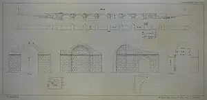 Ниже представлена информация о ширинах (в метрах) основных архитектурных элементов (арки выделены жирным шрифтом, опоры в скобках)[10]: