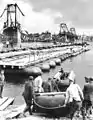 Немецкие солдаты наводят понтонную переправу около разрушенного моста им. Евгении Бош, сентябрь 1941 года