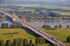 Строительство моста велось с 1998 по 2002 годы строительными компаниями «Leonhardt, Andrä und Partner»[1] и «Meyer + Schubart»[2]. Расходы на строительство составили 160 млн. немецких марок.