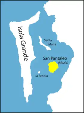 Маленький остров (850 на 750 м), на котором греками, по Фукидиду — финикийцами, был построен город, который ещё во времена античности был соединён с Сицилией мостом.[1] В XI веке на острове поселились монахи-базилианцы, а Мотия была переименована в Сан-Панталео.
