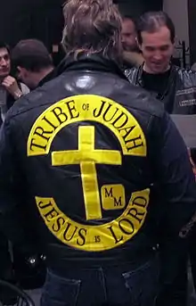 Нашивки мотоклуба Tribe of Judah MM с надписью «Иисус Господь» на нижнем рокере. - Трёхчастные нашивки, но на нижнем рокере вместо названия местности написано что-либо другое — это MC, которые не претендуют на доминирование на определенной территории и не относят себя к 1 % мотоклубам. Прекрасной иллюстрацией такого мотоклуба является Boozefighters MC, у которого на нижнем рокере написано «основан в 1946 году», а местность зашифрована цифрами на отдельной нашивке сбоку, а также различные христианские мотоклубы, у которых на нижнем рокере может быть написано «Иисус Господь», «Новый Иерусалим» и другое.
