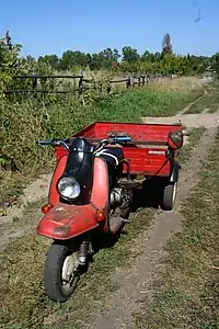 Есть грузовые модели мотороллеров, использующиеся для развозки, где сзади стоит широкое колесо или два колеса, есть мотороллеры с кабиной.