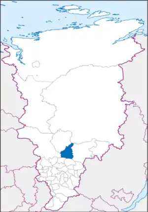 Административный центр — посёлок городского типа Мотыгино, в 550 км к северо-востоку от Красноярска.