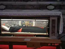 Мощи — высохшие мумифицировавшиеся останки (иногда отдельные кости) человека, почитаемого церковью святым.[77][78]