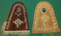 Помимо собственно мощей, почитались также так называемые «контактные реликвии», то есть всё, что соприкасалось с телом святого при жизни или после смерти: одежда, брандеум, миро, орудия мученичества и другие объекты. Реликвии также могли создаваться путём соприкосновения с могилой святого или другими контактными реликвиями[97]. Мощи начинают подмешивать в краски или мастику для написания икон. Такой воскомастикой была написана Влахернская икона, почитавшаяся в Константинополе как защитница города и византийских императоров, а после перенесения в Москву в 1653 году стала одной из главных русских святынь[98][99].