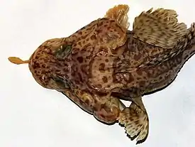 ![]() Pogonophryne marmorata, самка, 180 мм TL, вид сверху | ||||||||