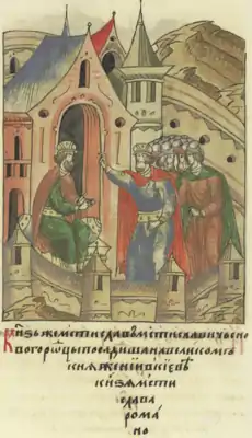 ![]() Мстислав Удатный сажает Мстислава Старого на киевский престол | |