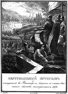 ![]() Мстилав Ростиславич Храбрый, стенопись Архангельского собора | |