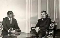 | Вице-президент | Первые вице-президенты: Саймон Музенда (1987—2003); Джойс Муджуру (2004—2014) Эммерсон Мнангагва (2014—2017); Вторые вице-президенты: Джошуа Нкомо (1987—1999) Джозеф Мсика (1999—2009) Джон Нкомо (2009—2013) Фелекезела Мфоко (2014—2017) |