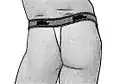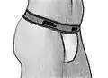 - Джоки (англ. jockstrap) — нижнее бельё, внешне схожее с танга или стрингами спереди, но не закрывающее ягодицы, фиксируется специальными эластичными лямкам, проходящими снизу ягодиц[4].