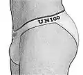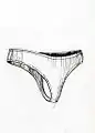 - Стринги (англ. string) — трусы, задняя половина которых представляет собой узкую полоску ткани или ленточку, располагающуюся между ягодицами.