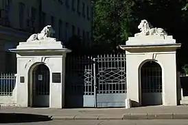 В 1936 году во дворе больницы был установлeн ранее находившийся на Цветном бульваре памятник Фёдору Достоевскому скульптора Сергея Меркурова[11]. Работу над памятником архитектор начал ещё в 1911 году и перед тем, как ваять фигуру в шведском граните, он создал около 20 бюстов писателя, для которых позировал артист и композитор Александр Вертинский[12][13].