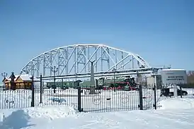 - Ферма — во время демонтажа старого моста 1916 года постройки был сохранен целиком один из его пролетов конструкции профессора Л. Д. Проскурякова. Он стал первым и главным экспонатом музея. Стоит перпендикулярно к берегу на опорах, длина 127 метров, высота 30 метров, масса 1100 тонн[3].
