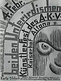 Плакат к Фестивалю художников Альтоны «В подземельях Союза художников Альтоны», Венцель Хаблик, 1928. Ксилография, 42,8 × 58,8.