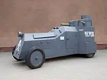 Возле музейного комплекса установлен макет бронеавтомобиля Мгебров-Изотта-Фраскини.
