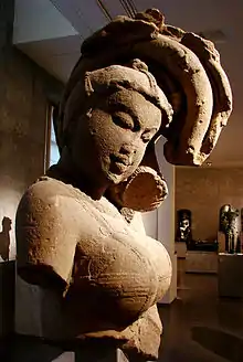 Традиционно стены храмов украшались множеством подобных статуй второстепенных божеств: девата (фр. devatâ), ублажающих богов своим присутствием, и шалабханижка (фр. shâlabhanjikâ) (на илл. справа), символизирующих плодородие. Серьги и бусы скульптуры достоверно свидетельствуют о вечном пристрастии индийских женщин к украшениям и бижутерии.
