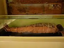 Мумия с маской и саркофаг 25-летней женщины датируется Поздним периодом (664—343 до н. э.).