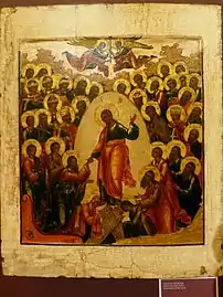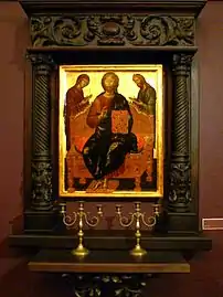 Организации выставки придан не хронологический или географический, а тематический характер. Эта тематика разделена на 3 области: первая посвящена Пантократору и демонстрирует величие Христа как Небесного Царя и Судию; вторая область знакомит с византийской литургией; третья — с иконографией святых.