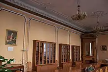 В атриуме анфилады комнат особняка и его парадных помещений представлена коллекция старинных предметов врачебного обихода — хирургический инструментарий, металлические грелки, спиртовки, стетоскопы и др. Нельзя не заметить старинный саквояж, вызывающий невольную ассоциацию с эпохой А. П. Чехова и В. В. Вересаева. В отдельной напольной витрине демонстрируется старинный микроскоп, лупы и содержится информация о работе в этом направлении крупнейшего русского ученого М. В. Ломоносова.