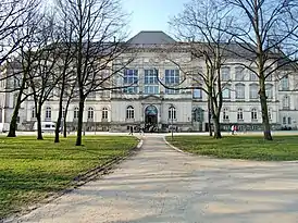 Музейное здание было построено в 1873—1875 годах по проекту архитектора Карла Иоганна Кристиана Циммермана (1831—1911) как многофункциональное здание. Четырехэтажный комплекс с двумя внутренними дворами был похож на аналогичные проекты в Вене. В 1891 году здание получило пристройку, в которой разместился музей естественной истории — пристройка была разрушена в 1943 году. Тренажерный (физкультурный) зал, изначально «неадекватный» своему предназначению — в связи с наличием в нём четырёх массивных колонн — был вскоре переоформлен в выставочное пространство; в 1952 году он был ещё раз перестроен. Здание было занесено в список архитектурных памятников в 1981 году. В 2000 году библиотека, ранее находившаяся в мезонине, переехала в подвал сохранив свой фонд в 200 000 томов.