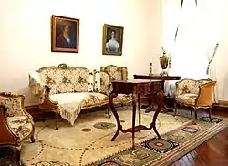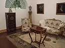 В гостиной, куда гости переходили после обеда, расставлена антикварная мебель XVIII—XIX веков, а также этажерки с зеркальными стенками. Многие дворянские семьи увлекались коллекционированием статуэток, поэтому зеркало было необходимо для отражения задней поверхности фигурок[16].