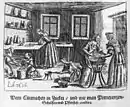 Печать, на которой показывается консервирование фруктов с использованием сахара (XVII век)