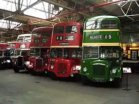 ![]() Автобусы компании North Western Road Car, ранее обслуживавшие маршруты Manchester Corporation и Salford Corporation, в Музее транспорта. | |