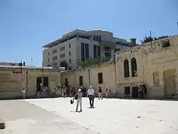 - Тюремный двор — Для ежедневных физических упражнений использовались два просторных двора. Здесь также располагались хозяйственные помещения, такие как кухни и умывальники. Член Пальмаха, Гидон Пели, работал на кухне. Его подруга Браха Фулд, которая также была членом Пальмаха, регулярно посещала его. Однажды она не пришла в назначенный день. Из обрывка газеты, обнаруженного на кухне в коробке для одного из продуктов питания, Гидон узнал причину: Браха была убита англичанами во время операции перехода нелегальных иммигрантов с корабля «Орд Уингейт» на тель-авивский берег в марте 1946 года[3]. После освобождения из тюрьмы Гидон сражался в Войне за независимость Израиля и был убит в одном из боев за Кастель в марте 1948 года.