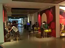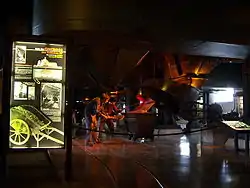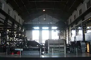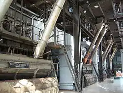 Вход в индустриальный комплекс осуществляется через выставочный зал, старую котельную низкого давления; в настоящее время это свободное пространство, где проходят выставки и где можно рассмотреть тепло- увеличенные турбины, а также распределители угля старой котельни, которых уже не существует.