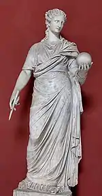 | Полигимния | Πολυύμνια, Πολύμνια | Polyhymnia, Polymnia | пантомима и гимны |