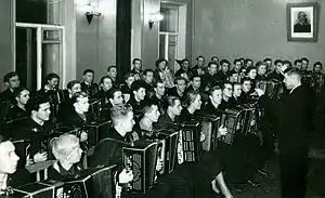 I гр. — детская музыкальная школа; II гр. — училище; III гр. — музыкальная школа взрослых. Каждая группа работала согласно своему учебному плану. Общий контингент учащихся тогда был 300 чел. Весной этого же года было несколько выступлений наших учащихся по радио, продолжались концертные выступления в военных частях.