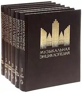 - Музыкальная энциклопедия : [в 6 т.] / гл. ред. Ю. В. Келдыш. — М. : Советская энциклопедия : Советский композитор, 1973—1982. — (Энциклопедии. Словари. Справочники).