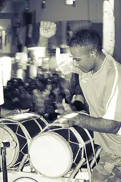 Музыку исполняют примерно 22 человека, сидящих друг напротив друга в 2 ряда. Это — тип музыки, которая имеет полурелигиозную основу.